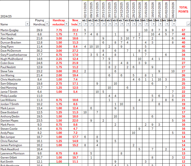 Martin Quigley extends his OOM lead, even though he’s been heavily docked handicap.. well done Martin great golfing.